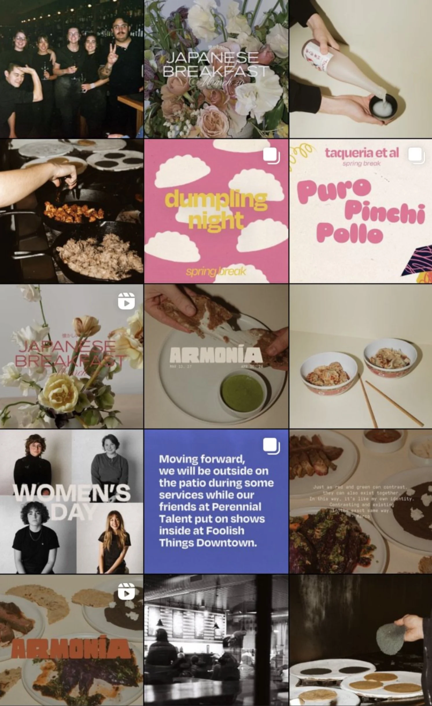 From American biscuits, a coursed-out pastry dinner, classic Mexican dinners and a weekly program, a dumpling night, a hand-rolled sushi dinner, all-American vegetarian food, a Peruvian dinner, and other programs, the diverse brand all had fleshed-out sub-brands with their own story and photo shoots.